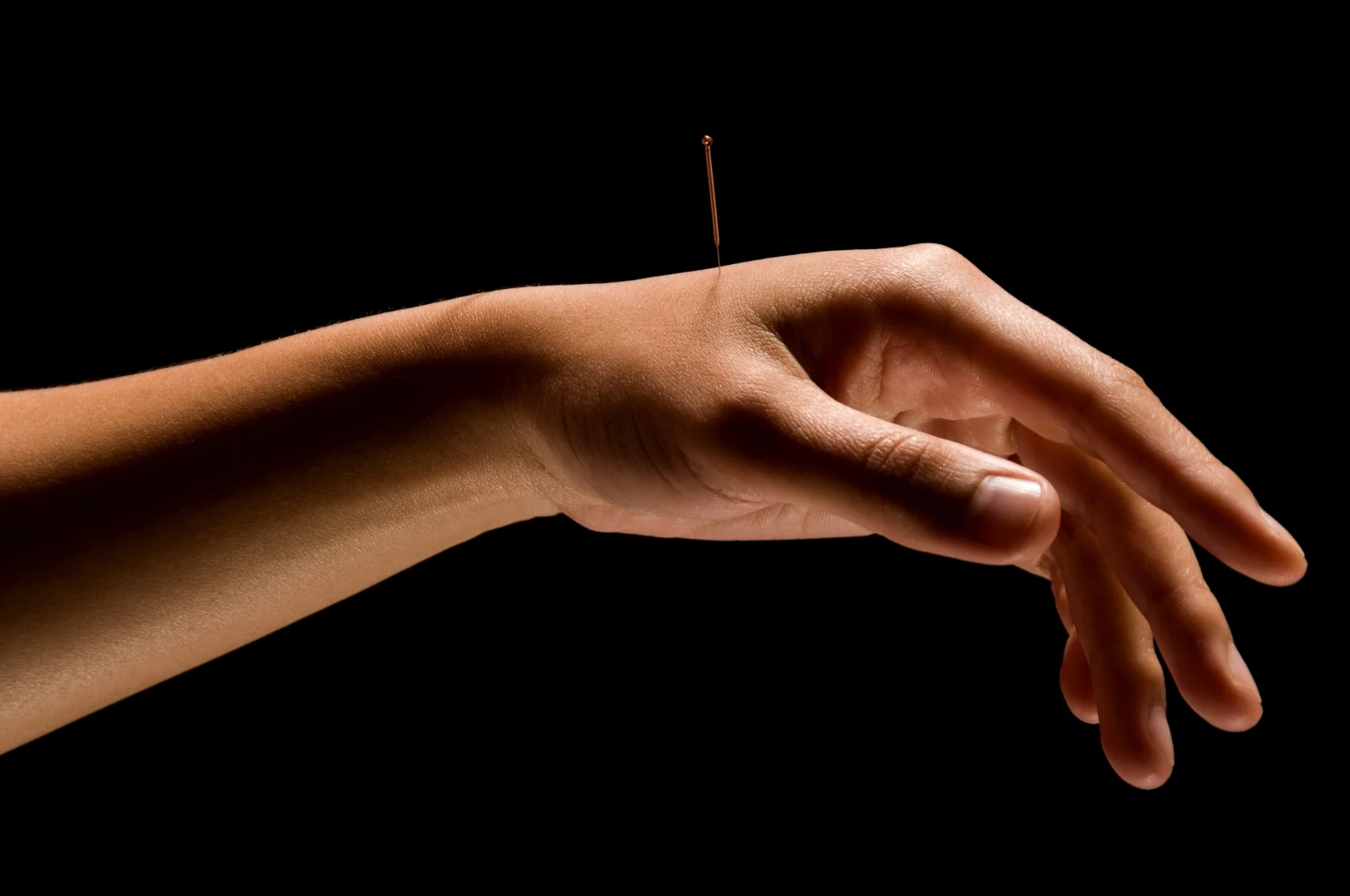 Acupuncture treatment involves fine needles being inserted through the skin and briefly left in position.